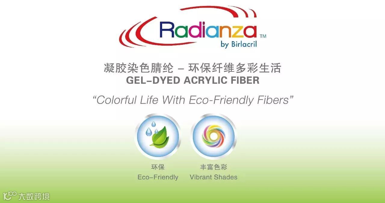 日泰腈纶有限公司旗下凝胶染色品牌“Radianza”,所运用的凝胶染色技术是在纤维生产过程中,纤维由液态从喷丝头喷出,在半固态、半液态的凝胶状态时染色。常规纱线染色每公斤纱需要消耗40升水,而且需要消耗大量电能和其它能源。但是,日泰凝胶染色腈纶在常温下上色,生产1公斤有色纤维只需1升水。在如今严峻的染整行业中,凝胶染色腈纶的使用将解决耗水大的难题。与此同时,在日泰凝胶染色腈纶上色过程中,不需要添加任何有害化学品上色,环保、安全,并且大批量生产颜色均匀齐整。