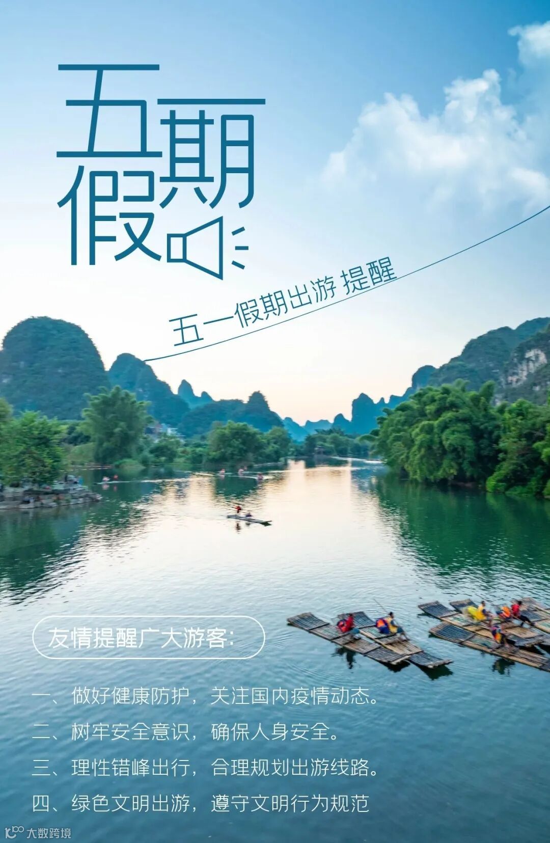“五一”国际劳动节期间,各大景区人流密度增大,旅游安全风险上升。请广大员工严格遵守疫情防控有关要求,根据疫情传播及天气情况合理规划出行安排,选择正规景区游玩,严格遵守景区、游乐设施安全规定,谨慎参与高空、高速、探险、水上等高风险项目,身处陡坡、高台、水边等危险区域要注意周边环境情况,看护好随行老人、儿童,防范溺水、摔伤等安全事故发生。