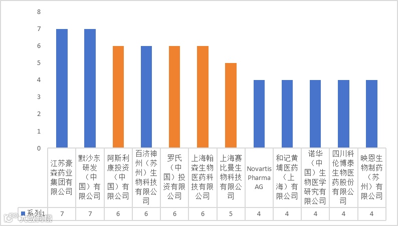 2025年6月,国合申报获批申办方共计111家,分布于我国8个省、自治区、直辖市,其中上海市申报项目最多,共计65项(38.31%),其次为江苏省和北京市,申报项目分别为37项(20.13%)、17项(11.04%);江苏豪森药业集团有限公司和默沙东研发(中国)有限公司开展项目最多,均为7项。