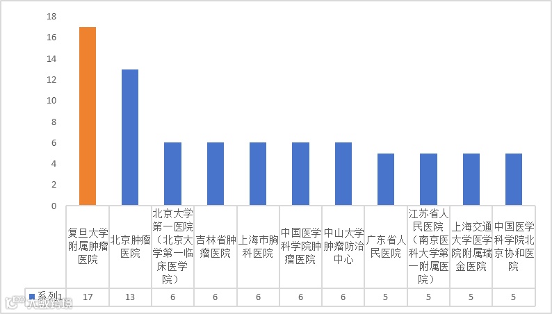2025年6月,国合获批的医疗机构(组长单位)共计49家,分布于我国17个省、自治区、直辖市,其中上海市申报项目最多,共计45项(29.22%),其次为北京市和广东省,申报项目分别为44项(28.57%)、16项(10.39%);其中复旦大学附属肿瘤医院开展项目最多,为17项;其次北京肿瘤医院、北京大学第一医院(吉林省肿瘤医院、上海市胸科医院、中国医学科学院肿瘤医院、中山大学肿瘤防治中心),分别为13项和6项。