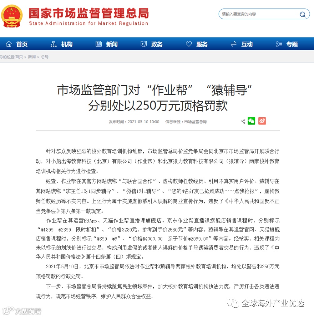 其实,不仅这两家校外培训机构,今年4月以来,校外教育培训机构便屡遭通报,包括学而思网校、高途课堂、网易有道精品课、跟谁学、新东方在线、高思教育等多家知名培训机构。