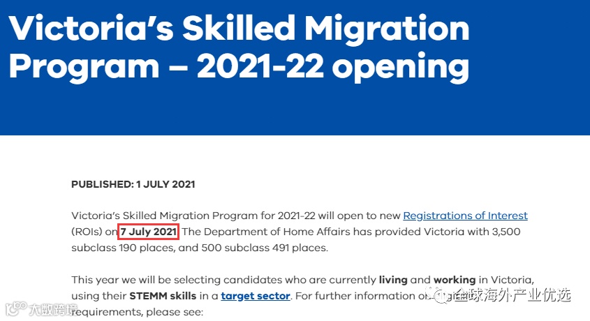维州政府宣布将于2021年7月7日开放新的ROI申请,维州新财年配额:3500个190类别,500个491类别。
