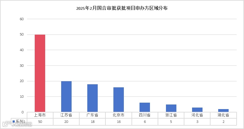 2025年2月,国合申报获批申办方共计38家,分布于我国9个省、自治区、直辖市,其中,上海市申报项目最多,共计50项(41.3%),其次为广东省和江苏省,申报项目分别为20项(16.5%)、18项(14.9%);中山康方生物医药有限公司和百时美施贵宝(中国)投资有限公司开展项目最多,均为7项。