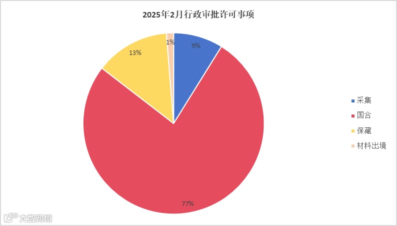 2025年2月,人类遗传资源行政审批许可事项共计158项,其中国际合作科学研究121项、占比76.58%。