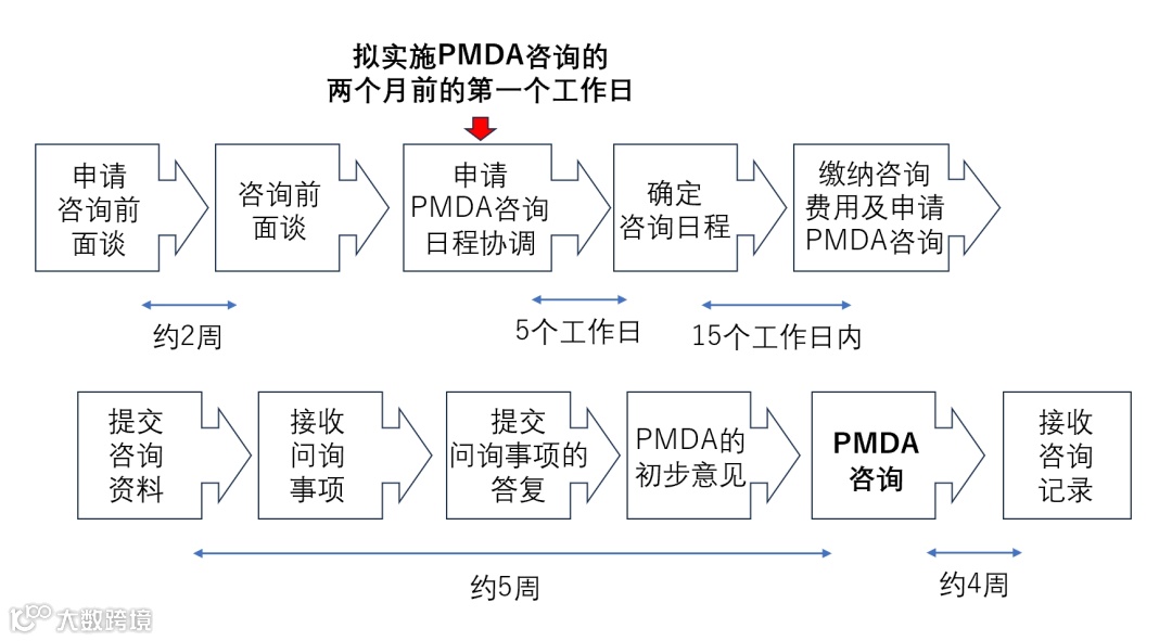 图2显示了从申请PMDA咨询到接收咨询记录的流程。