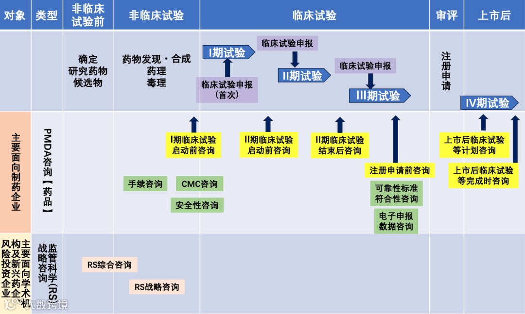 图1. 药物研发相关的PMDA咨询的主要类型与实施时间