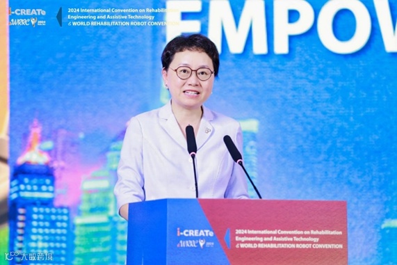 2024国际康复工程与辅助技术大会暨世界康复机器人大会启动仪式在中国工程院院士庄松林、中国科学院院士褚君浩大会主席喻洪流 、Sarun Sumriddetchkajorn CRAETe Asia主席、上海中医药大学原校长/i-CREATE大会联合主席徐建光、中国康复医学会前会长、学会专家委员会主任方国恩、上海市残疾人联合会理事长杜松全、上海市民政局副局长沈敏、瑞士联邦理工学院教授、WRRC共同主席Robert Reiner、CREATe Asia联合创始人、WRRC共同主席Wei Tech Ang、上海市杨浦区副区长王浩、上海市科委生物医药处处长、二级巡视员曹宏明共同启动中正式拉开帷幕。
