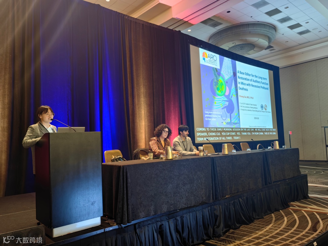 崔冲博士汇报了针对隐性(OTOF)遗传性耳聋,研发高效、精准、安全的双AAV介导的ABE碱基编辑器治疗体系,在长达1.5年的时间内将听力恢复至近野生型水平,是耳聋基因治疗领域在动物模型中迄今观察时间最长的有效结果,为未来的基因治疗药物研发提供了新策略。