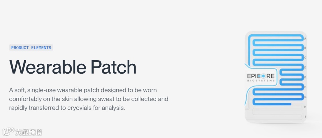 Epicore的汗液传感解决方案包括:Gx Sweat Patch(Gx汗液贴片)、Discovery Patch sweat collection system(Discovery贴片汗液收集系统,一种FDA I类设备)、Connected Hydration可穿戴设备和云平台。