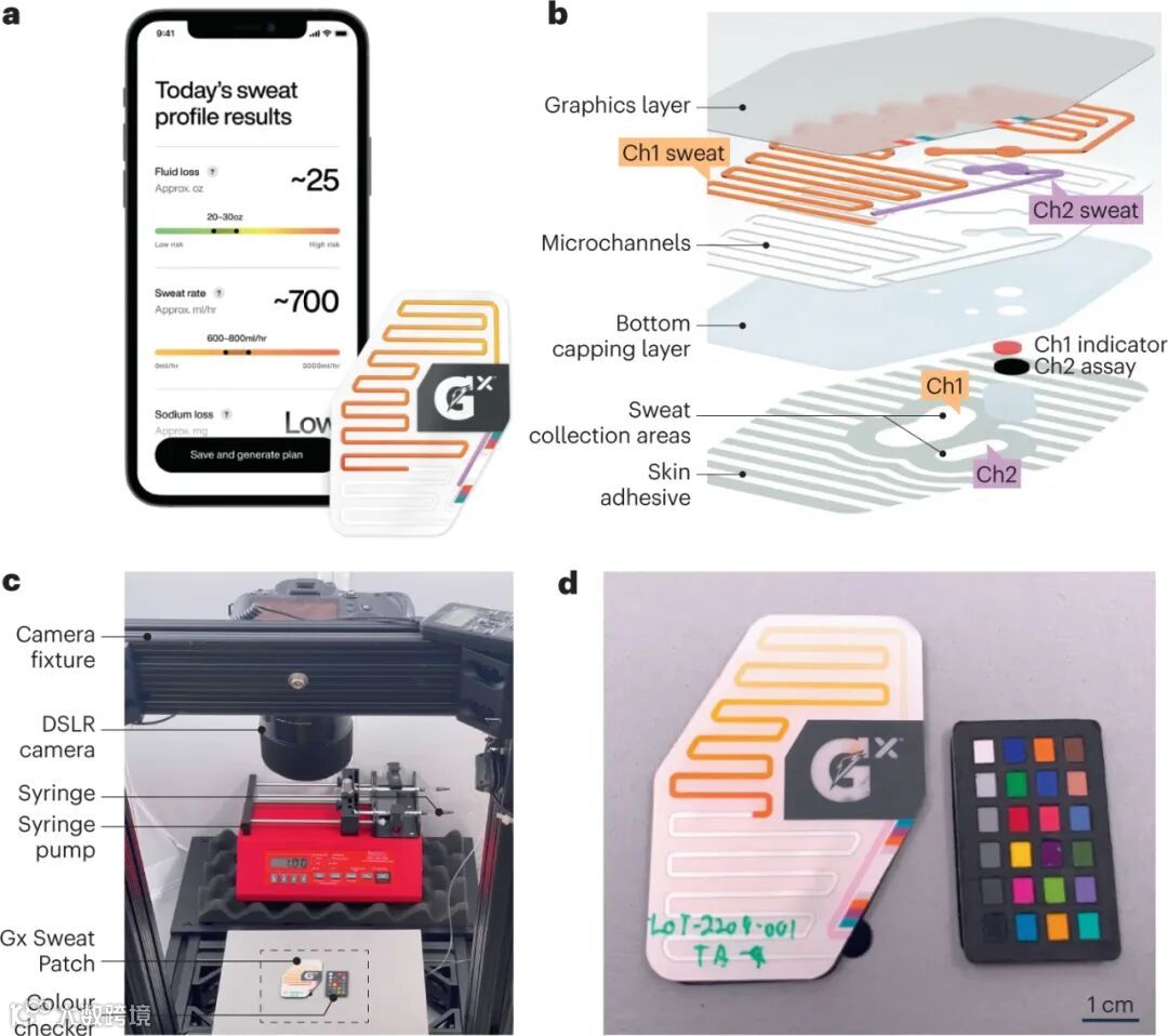 Gx Sweat Patch 是由 Epicore Biosystems 与 Gatorade 合作开发的穿戴式贴片,旨在测量运动员的排汗率、体液流失和钠流失,从而提供个性化的补水建议。它可以帮助运动员根据自己的排汗情况制定个性化的准备和恢复计划。该贴片通过分析贴片内的颜色变化来工作,然后由智能手机上的 Gx 应用程序进行解读。