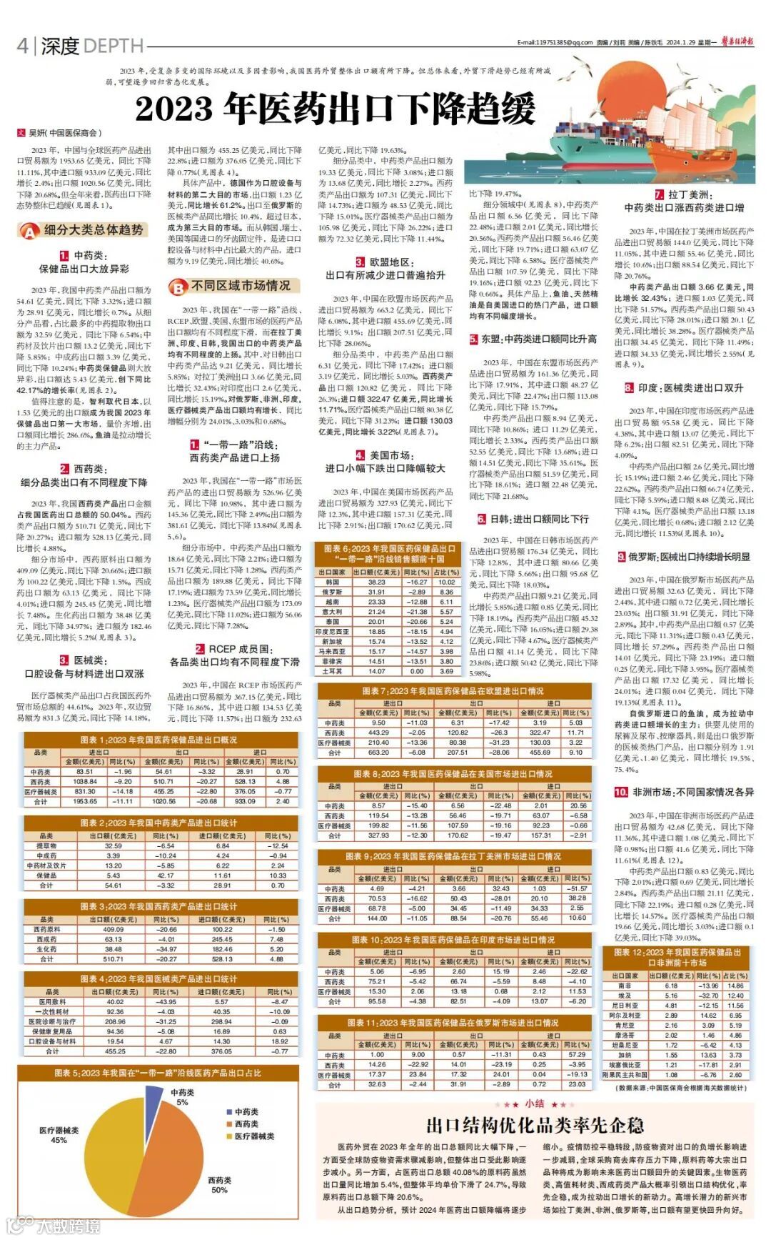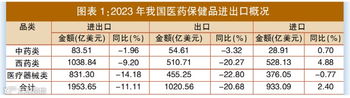 2023年,受复杂多变的国际环境以及多因素影响,我国医药外贸整体出口额有所下降。但总体来看,外贸下滑趋势已经有所减弱,可望逐步回归常态化发展。