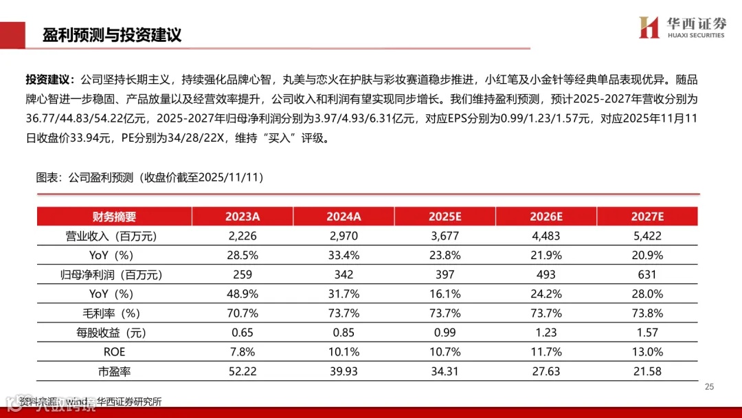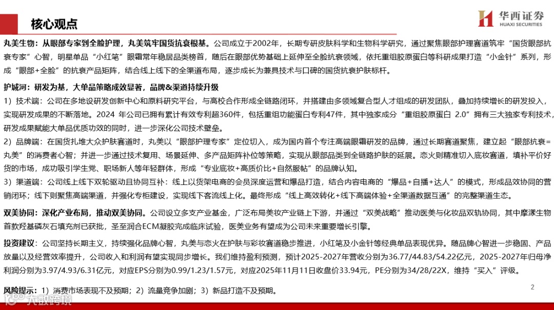 公司设立多支产业基金,广泛布局美妆产业链上下游,并通过“双美战略”推动医美与化妆品双轨协同,其中摩漾生物首款羟基磷灰石填充剂已获批,圣至润合ECM凝胶完成临床试验,医美业务有望成为公司未来重要增长引擎。