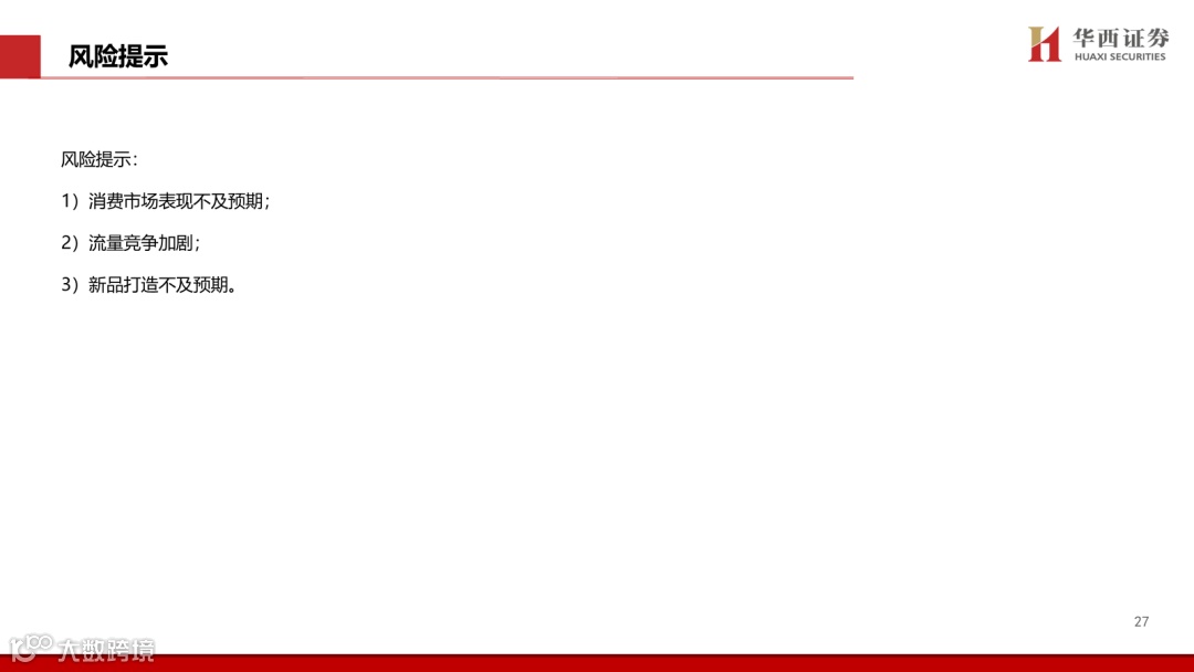 1)消费市场表现不及预期;2)流量竞争加剧;3)新品打造不及预期。