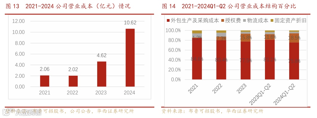 销售总成本从2021年至2024年呈现出波动上升趋势,2023年和2024年的增幅尤为显著,表明布鲁可的业务规模扩张以及相关成本增加。