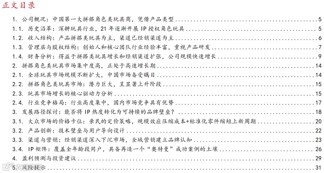 公司概况:中国第一大拼搭角色类玩具商,凭借产品类型