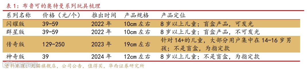持续在奥特曼系列挖掘价值。布鲁可通过高频迭代奥特曼系列,在授权窗口期内最大化商业价值,支撑业绩高增长并优化供应链效率。目前奥特曼共有四个系列,闪耀版、群星版、传奇版、神奇版,定价和规格不同,面向不同的消费人群,在奥特曼IP上的持续深耕也是公司未来业绩的基本盘所在。