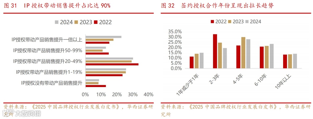 行业合作呈现长期化趋势。从授权合作周期结构看,2024年签约期为4–5年的合作占比提升至近30%,较2022年增长6个百分点,说明企业倾向建立更长期、稳定的IP合作关系。这一趋势也表明市场对优质IP认知度与粘性不断增强,从“一次性授权”向“品牌共建型合作”演进,推动IP商业价值持续释放。