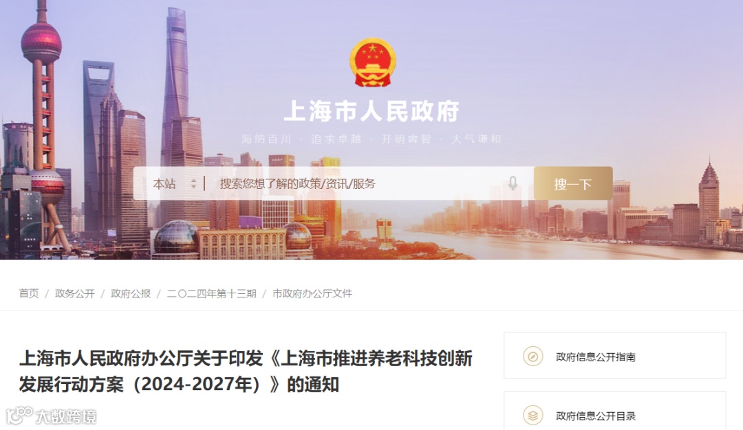 上海市人民政府办公厅关于印发《上海市推进养老科技创新发展行动方案(2024-2027年)》的通知