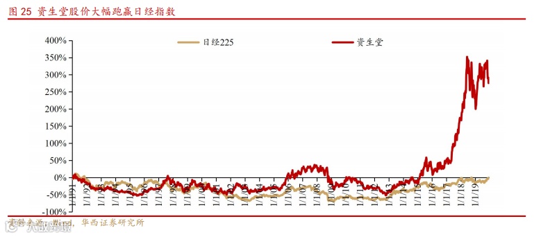 高端化+全球化带领资生堂穿越经济周期。资生堂的高端化和全球化战略使其能够在经济周期波动中保持稳健增长。资生堂自 80 年代起加大对高端品牌的投入,自主推出如 Clé de Peau Beauté(CPB)、IPSA 和 The Ginza 等高端品牌,以此在日本经济低迷时期仍然实现股价和业绩突破。在全球化方面,进入 21 世纪,公司通过收购 NARS、BareMinerals、Drunk Elephant 等高端欧美品牌和拓展国际市场,如加强在中国、美国和欧洲市场的布局,使其全球营收结构更加均衡,降低了单一市场经济波动的影响。高端化与全球化的结合,使资生堂在应对经济衰退时能依靠高端消费的相对韧性,同时通过多元市场的增长对冲单一市场的风险,从而实现穿越经济周期的稳健增长,1991-2019 年,日经 225 指数几乎持平,而资生堂股价翻了近 4 倍。