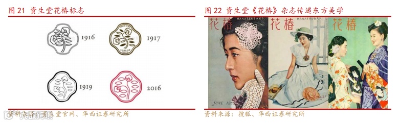 根植东方文化,品牌形象突出。资生堂品牌深度挖掘东方文化,从代表性的花椿商标到广告中的卷轴特色,品牌形象反映了花朵盛开和藤蔓交织的活力,品牌名称同样源自《易经》中的“至哉坤元,万物资生”, 将东方的美学及意识与西方的技术及商业实践相结合,将先进技术与传统理念相结合,用西方技术诠释含蓄的东方文化。1924 年,资生堂创立了面向化妆品爱好者的《资生堂月报》,1937年改名《花椿》,以纸质媒介传递资生堂东方审美及生活态度,早期杂志中不仅有化妆技巧和美容方法,更有绘画、摄影、小说、以及诗歌等内容,鼓励倡导日本女性自主、自信、展现由内到外的气质美,长期文化输出为资生堂构建了稳固的品牌形象,为之后成为东方美妆巨头奠定了基础。
