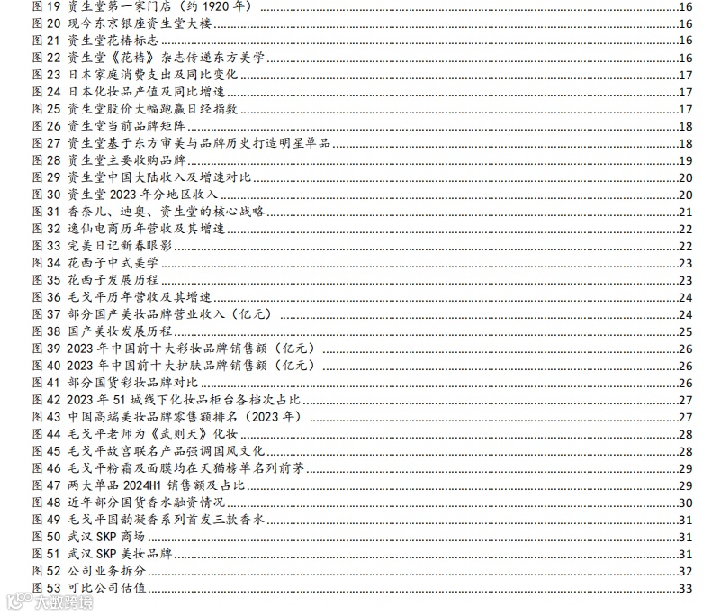 近年来,国货美妆市场经历了从流量驱动到产品迭代再到品牌沉淀的深刻变革。完美日记、花西子和毛戈平分别代表了国货美妆在不同发展阶段的特色路径,从大众消费品牌的营销突围,到中高端品牌的文化赋能,再到高端国货彩妆的专业化崛起,共同推动了中国美妆行业的本土化、高端化进程。类比日本上世纪末经济起伏和全球市场竞争中,资生堂依托高端化+全球化的战略穿越经济周期,以技术研发、东方美学和国际化布局持续稳固其高端美妆领导地位,我们判断国内美妆市场也持续向高端化发展,而毛戈平品牌作为高端国货美妆的稀缺代表,有望在审美定价、专业彩妆、全球化拓展等方向上持续突破,成为国货高端彩妆走向国际化的重要先锋。