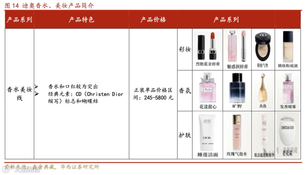 彩妆:迪奥在彩妆领域表现突出,对业绩的贡献率接近 50%。其口红系列和眼影、底妆等系列广受欢迎,尤其在时尚圈和名人圈中备受青睐。迪奥通过创新配方与色彩,持续推出适合各类肤色和需求的产品,成功扩大了彩妆的市场份额。