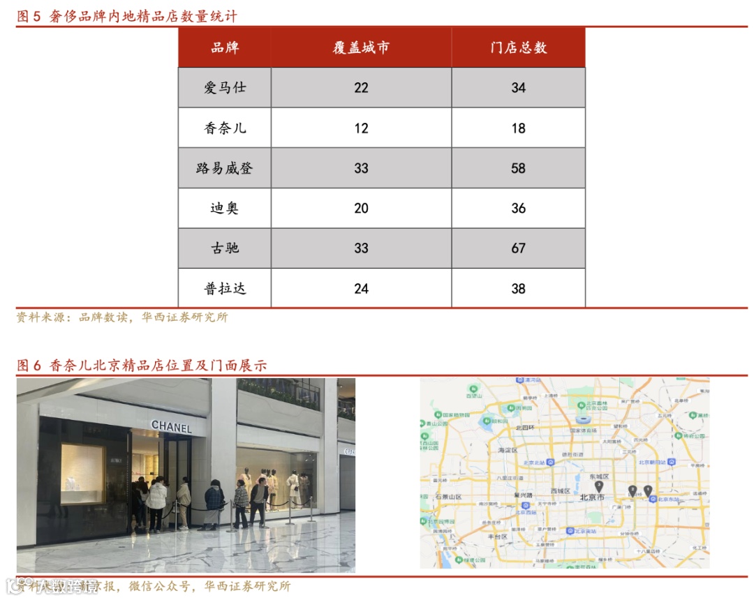 香奈儿始终专注于高端渠道。根据品牌数读统计,香奈儿目前在中国拥有 18 家精品店,覆盖 12个城市。且其最近引入了配额系统,根据该系统,人们每年只能购买一定数量的商品。通过少而精的精品店数量及特殊的分销方式,香奈儿创造产品的稀缺性和奢华性,并为客户提供独特的购物体验,最终达到提高产品感知价值的目的。