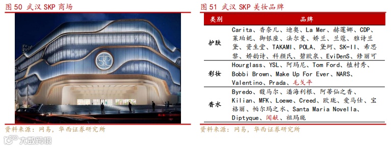去年 7 月,全国第四家 SKP 在武汉开业,从过往看,SKP 的零售能力在全国领先,在 2020 年更超越英国 Harrods 成为当年全球销售最高的商场,且 SKP 的高奢消费形象深入人心,而在武汉 SKP 的美妆专柜中,毛戈平和闻献是唯二的高端国货品牌。毛戈平持续拓宽线下高端渠道,我们判断在其 IPO 后,品牌形象提升,进驻高端商场阻碍进一步减小,同时租金有望降低。线上渠道方面,预计公司将受益于国货市占率提升的行业贝塔,看好毛戈平上市后在渠道上全面突破。