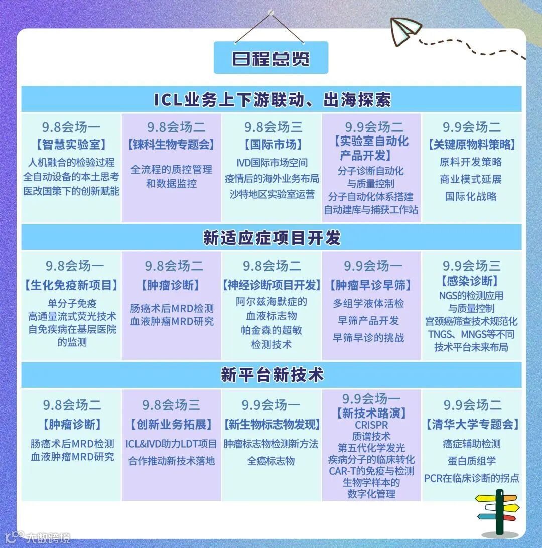 大会将聚焦新技术、新平台、LDT业务上下游联动及新适应症项目开发,从基础研究到临床研发转化,从技术开发到临床检验,从政府科研到企业商业化,打通上下游产业链,推动IVD企业和医学检验实验室更多创新产品开发及更好建设发展。
