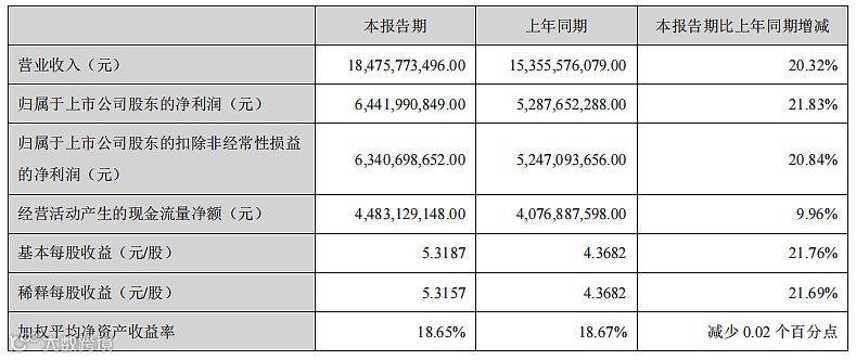 2023财年上半年度迈瑞医疗实现营业收入184.76亿元,同比增长20.32%;实现归母净利润64.42亿元,同比增长21.83%,维持了较为稳健的业绩水平。