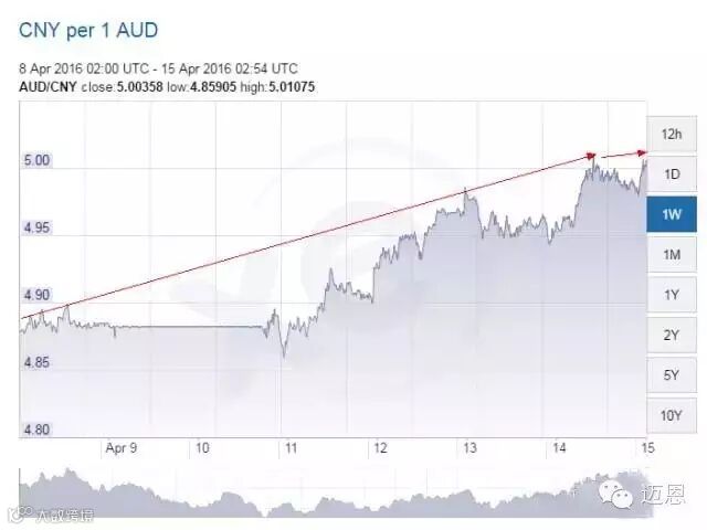 2016年4月8日-4月15日期间,澳币突然狂飙,最终破5.0,记住这一周~