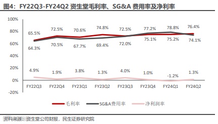FY24Q2(2024 年 4-6 月),公司毛利率为 76.4%,同比+1.56Pct;SG&A费用率为 74.14%,同比+4.78Pct;实现净利润 32.92 亿日元,对应净利率 1.27%,与去年同期持平;实现归母净利润 33.01 亿日元,对应归母净利率 1.27%,同比+0.07Pct;实现经营利润 60.17 亿日元,对应经营利润率 2.32%,同比+1.1Pct。