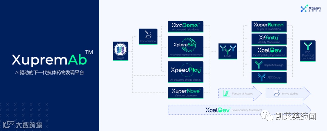 AI 驱动的下一代抗体发现平台XupremAb™ 将 AI 和经典的抗体发现技术有机融合,于药物发现的多个环节如苗头抗体发现、亲和力成熟及超级人源化等工程化改造以及抗体可开发性评估与优化,赋能创新抗体药物及新形式的发现和构建。