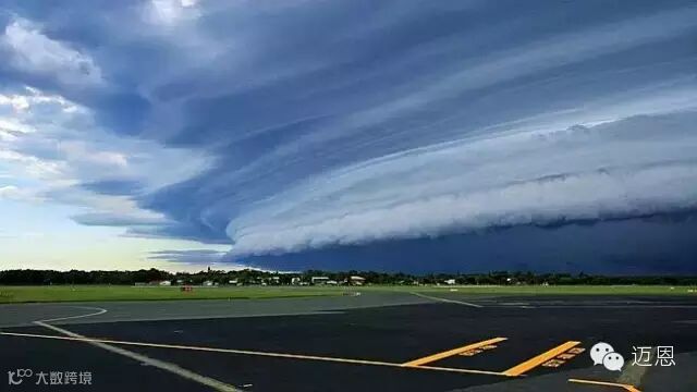 当时,在机场附近冷空气下沉气流与暖空气上升气流混合形成了非常壮观的,厚厚的乌云,逐渐逼压过来。