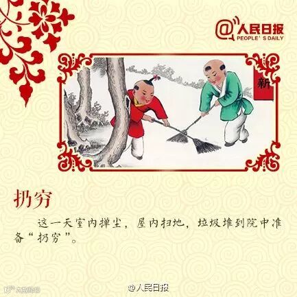 大年初四又称为“羊日”,是恭迎灶神回民间的日子;传说灶王爷这天要来查户口,所以不宜远出;家家户户要吃“折罗”——把几天剩下的饭菜合在一起的大杂烩;扔穷:室内掸尘,屋内扫地,垃圾堆到院中准备“扔穷”……