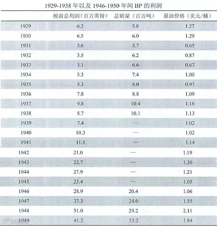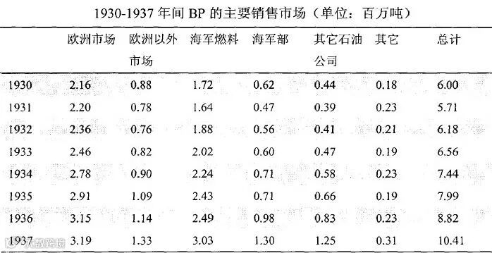 英国的保护和支持使得BP在1951年以前独家享有伊朗的石油开采权,同时也获取其他中东国家(主要包括伊拉克、科威特和卡塔尔)的石油开采权,并从中获得了巨大的利益。在上游原油生产得到充分保护的情况下,BP的生产水平不断提升,整体石油销售额也稳步增长,市场遍布全球各地。