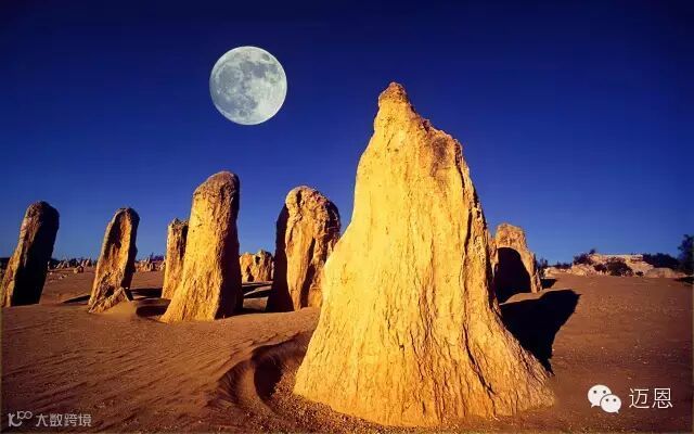 尖峰石阵(The Pinnacles)位于西澳首府城市佩斯以北245公里处的南博格国家公园内(Nambung National Park),公园内的奇形怪状的石柱遍布在沙漠中形成独特的奇观,在平坦的沙丘中,四处矗立着石灰岩尖塔式的石笋,最高的有1.5英尺,小的只有手指头那样大,犹如古战场的布阵,被誉为“尖峰石阵”。