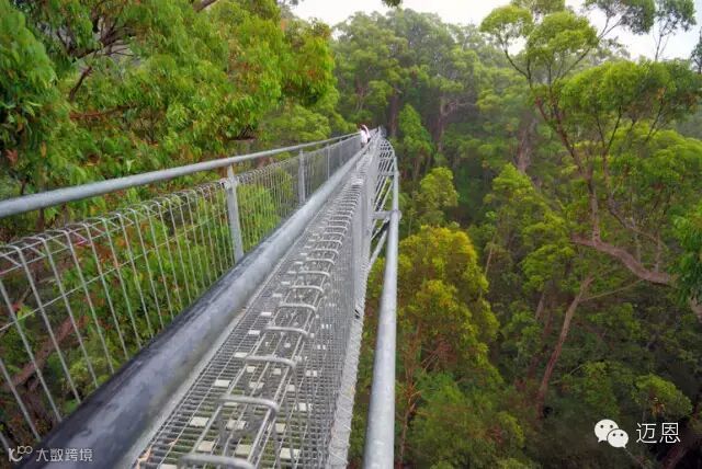 巨人谷(Valley of the Giants)的树顶步道(Treetop Walk)让您能够鸟瞰一些地球上最高的巨树——西澳大利亚雄伟壮观的汀格树( tingle tree)。攀爬40米进入林冠层,在树顶上漫步600米,这样的步道是世界上第一条,其设计初衷是让视野最大化,并把视觉冲击力降至最低。