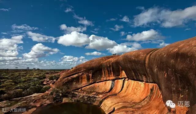 澳大利亚最长且距离海洋最远的波浪之一波浪岩(Wave Rock)升腾于内陆平原之上15米高度。经过大自然超过27亿年的雕琢,如今已成为广受欢迎的旅游景点。