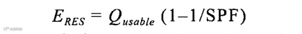 同样地,利用热泵获取地热能、空气热能或者水源热能,其供热量/制冷量也是采用估算方法。欧盟《可再生能源指令》中提供了热泵输出量中可再生能源部分的计算公式为: