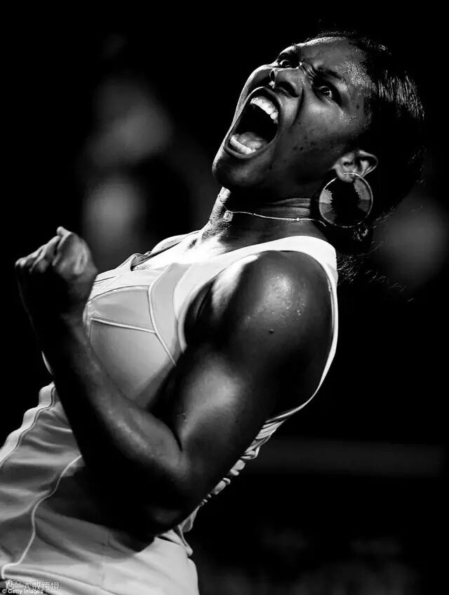 2007年1月21日,美国网球选手在澳网拿到一分时的抓拍。
