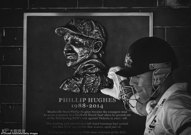 2015年1月6日,澳洲板球运动员在和印度的第四场比赛时,走出球场悼念飞利浦休斯。