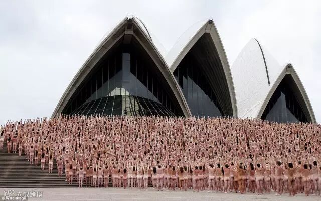 2010年3月1日,在悉尼歌剧院,澳大利亚人参加基地狂欢节,裸体艺术活动。