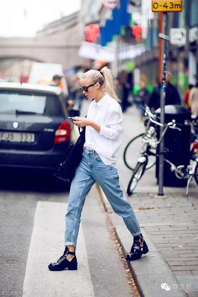 白衬衫+牛仔,就更多了一点拽酷的中性风情↓↓↓