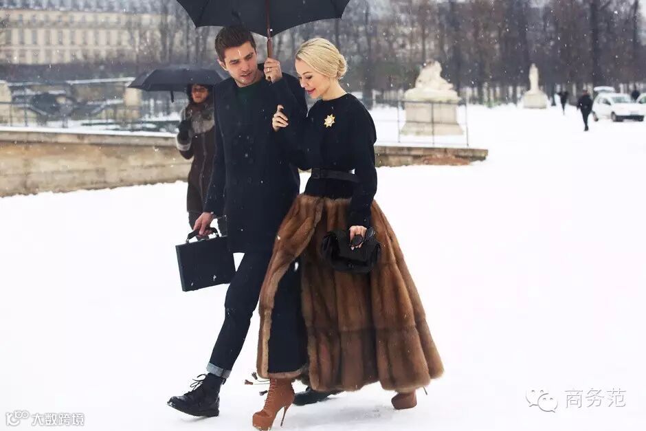 黑色束腰上衣加皮草半裙,这气场...让众生都拜倒在她的虎皮裙下吧↓↓↓