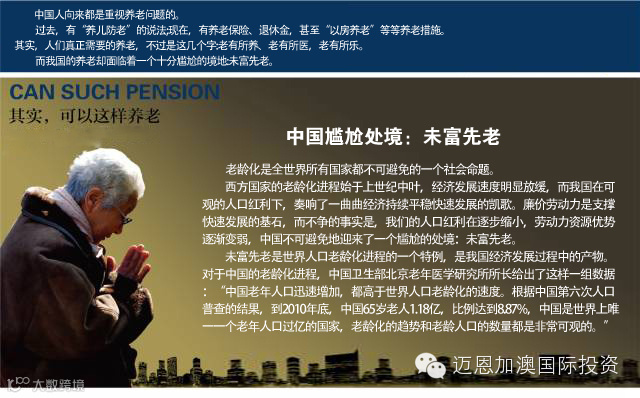 在中国的老年人群体中,存在着大量“住房富人、现金穷人”:经常可以看到许多拥有很好的住房却每日为生活费不足而发愁的老年人,他们往往花费了一生的积蓄(约上百万元)购买了住房,成为了“百万富翁”,但每日的生活却依然简陋,根本找不到任何成为“百万富翁”的感觉!于是,“以房养老”这一概念越来越受到全球老年人群体的关注。