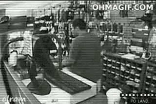 美国一家小超市内遭人持枪抢劫,然后汪星人勇敢无畏的精神。。