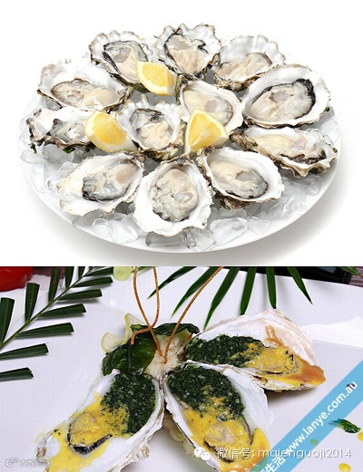 3、牡蛎牡蛎又称蚝,澳大利亚的蚝又肥又干净,还便宜($6/12只)。蚝可以生吃,也可以蒸吃。有很多香港人专到澳大利亚吃生蚝的,还戏称值得一张机票钱。新鲜的蚝连盖都没有打开,顾客可以看着营业员开盖后,挤鲜柠檬汁至蚝肉上佐酱生吃,美味无穷。