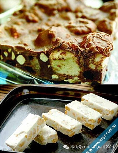 澳洲的扭结糖,主要用料是黑白巧克力。这些扭结糖,大的有半斤重,小的只有10克左右,做法十分传统,看起来好像都只是在白色或者黑色巧克力中掺入果仁、葡萄干、爆米花等,但巧克力的软硬不同、韧性不同、加入的配料不同也形成了好多种口味。