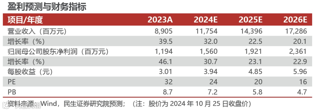 24Q1-3,公司实现营收69.66亿元,同比+32.72%;归母净利润9.99亿元,同比+33.95%;扣非归母净利9.71亿元,同比+33.81%。单Q3看,公司实现营收19.65亿元,同比+21.15%;归母净利润2.98亿元,同比+20.72%;扣非归母净利2.92亿元,同比+18.33%。